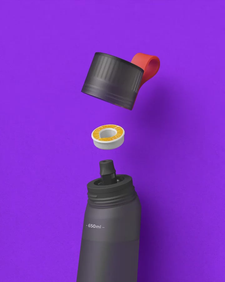👉 Solo tienes que insertar una cápsula aromática en la parte superior de la botella.